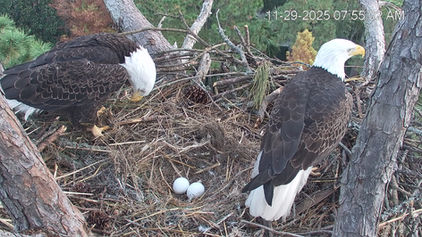 We are excited to share the latest updates from George and Gracie's nest! On November 21st, 2025 at 8:12 PM ET, the first egg of the 2025–2026 nesting season was laid, kicking off the countdown to hatch day.